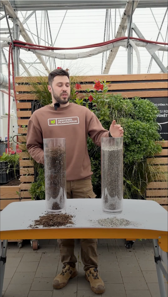 Lehký, vzdušný a dobře propustný (např. směs rašeliny, perlitu a písku).