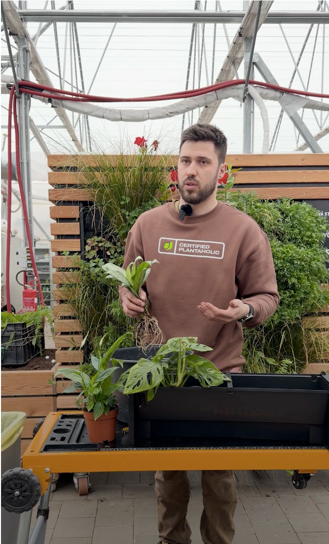 Každý modul má integrovanou nádržku na vodu, kapilární plst a ukazatel hladiny. Rostliny přijímají vlhkost přirozeně – díky vzlínání vody z plsti, která udržuje substrát rovnoměrně vlhký.